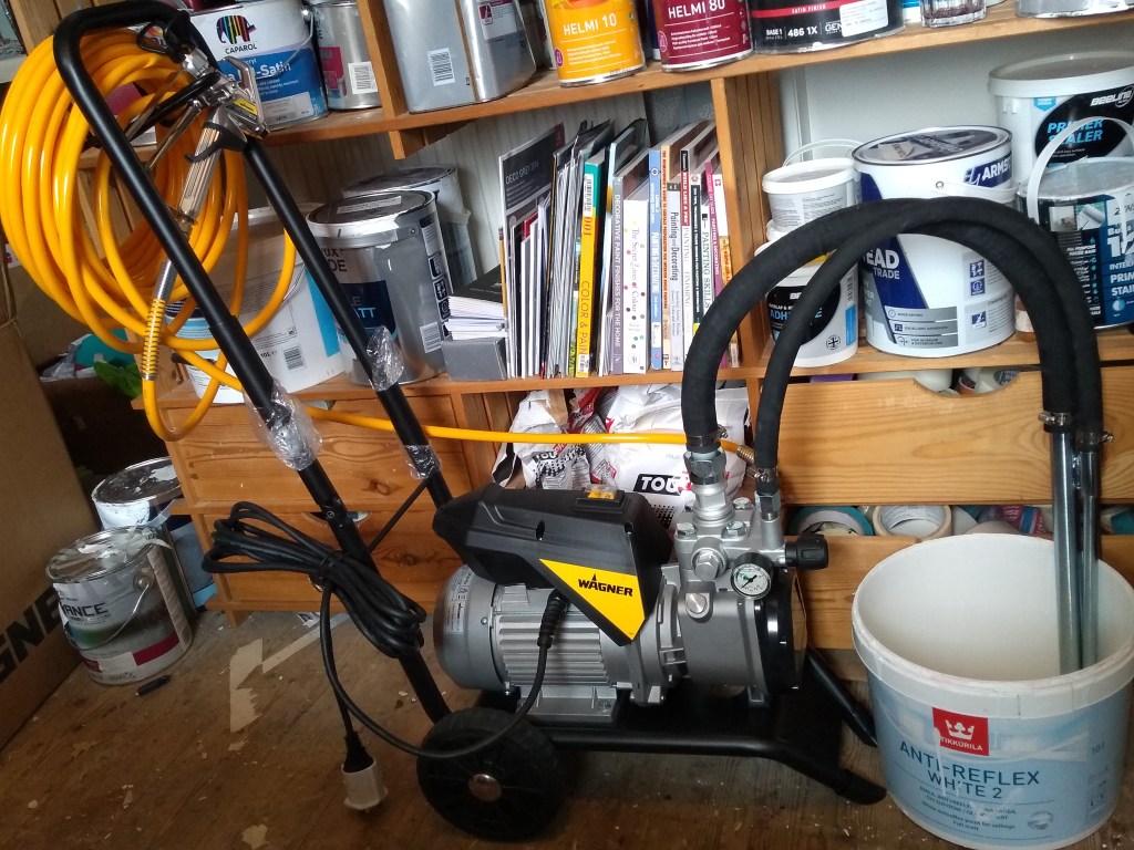 I can use my airless sprayer either directly from a large tub of paint, or from a hopper where smaller quantities are being used.