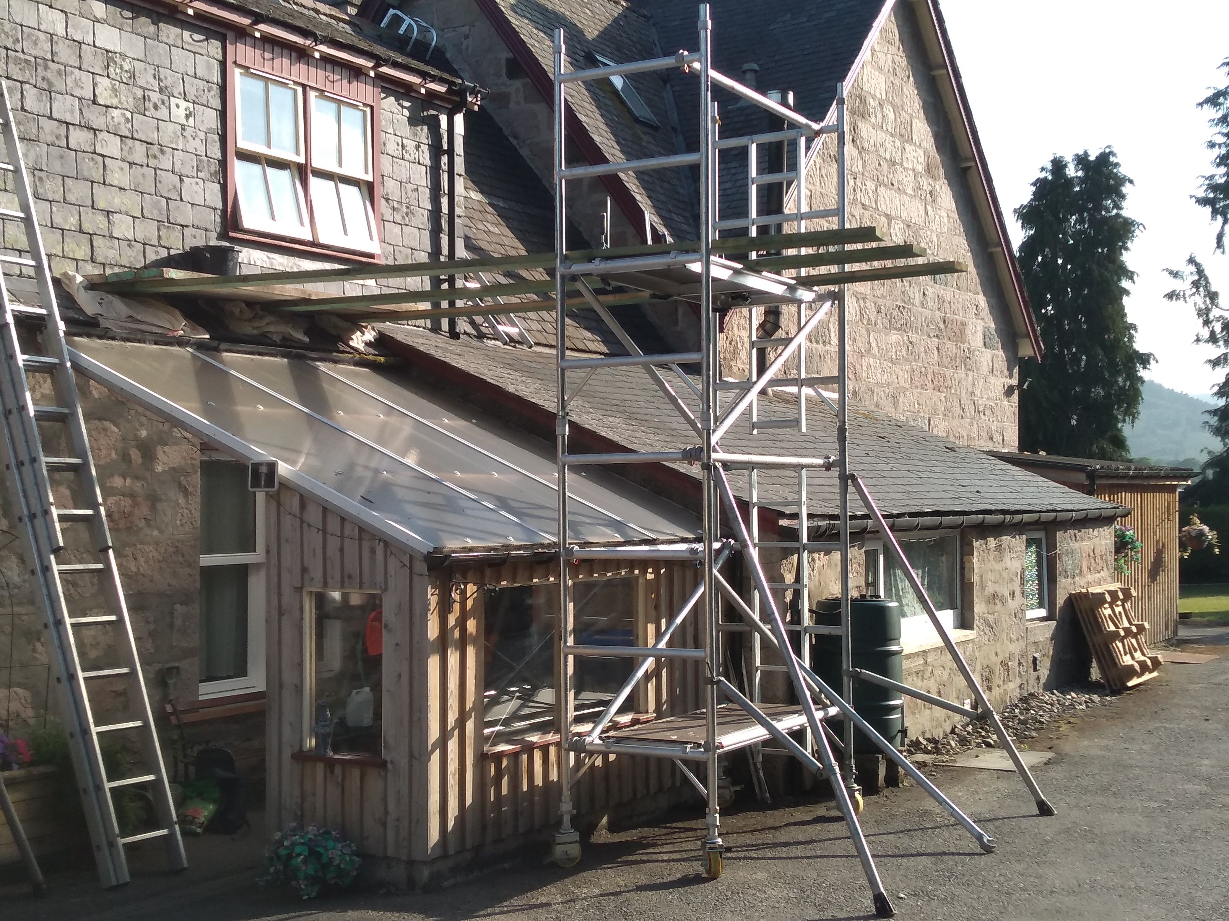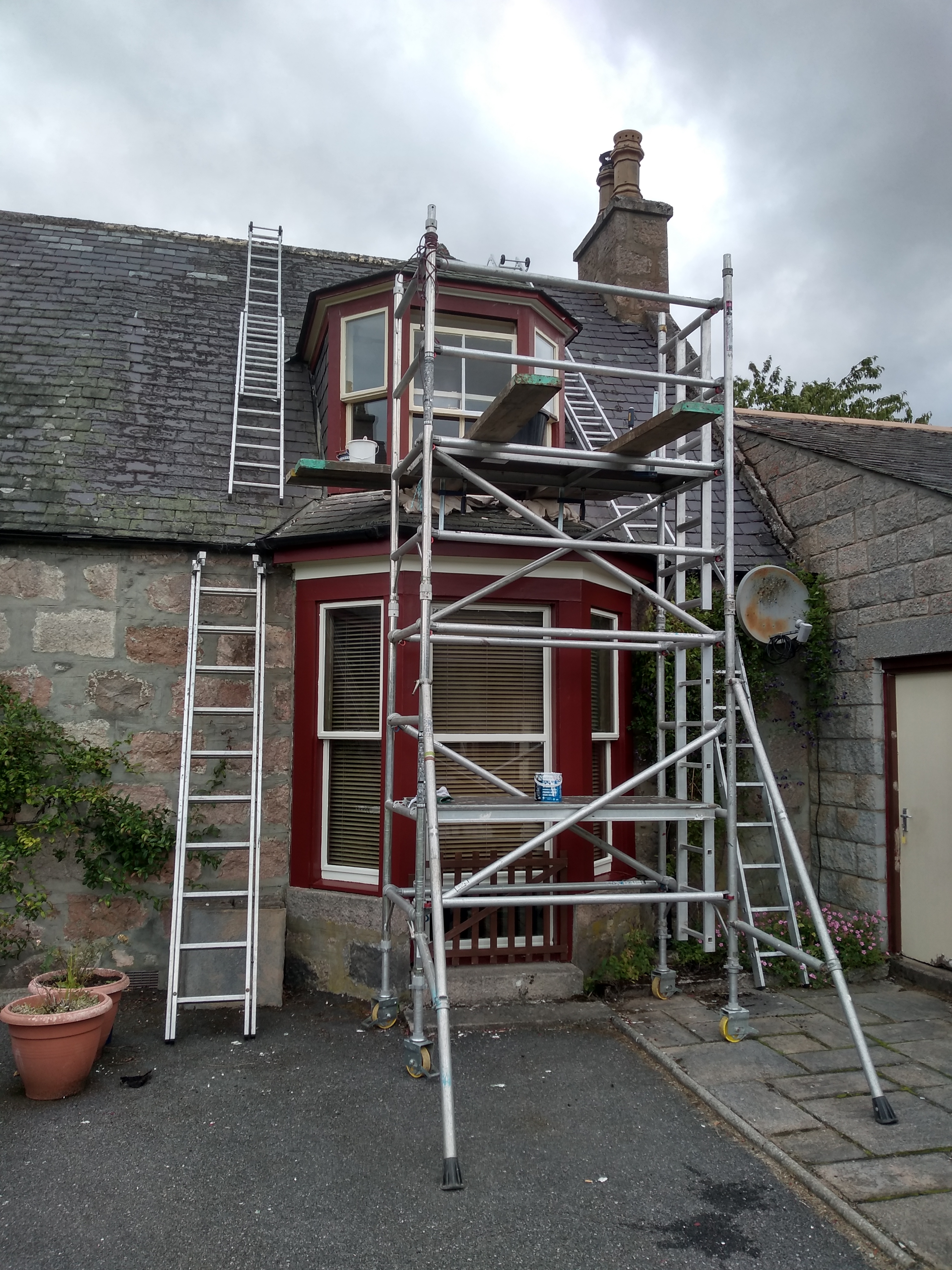 Over time i have built up a useful collection of ladders and scaffold that allow me to work efficiently and safely on your property. Inset dormer windows, gable ends and even gables over garages can be reached without recourse to outside contractors making considerable savings.